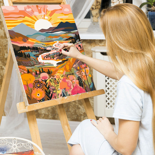 EFOTIML Paint by Numbers Kit for Adults Beginners & Kids Ages 8-12,1 Pack 16x20 inches Canva for Painting Kits for Adults in Colorful Box(Without Frame)- Sunrise Mountains and Rivers